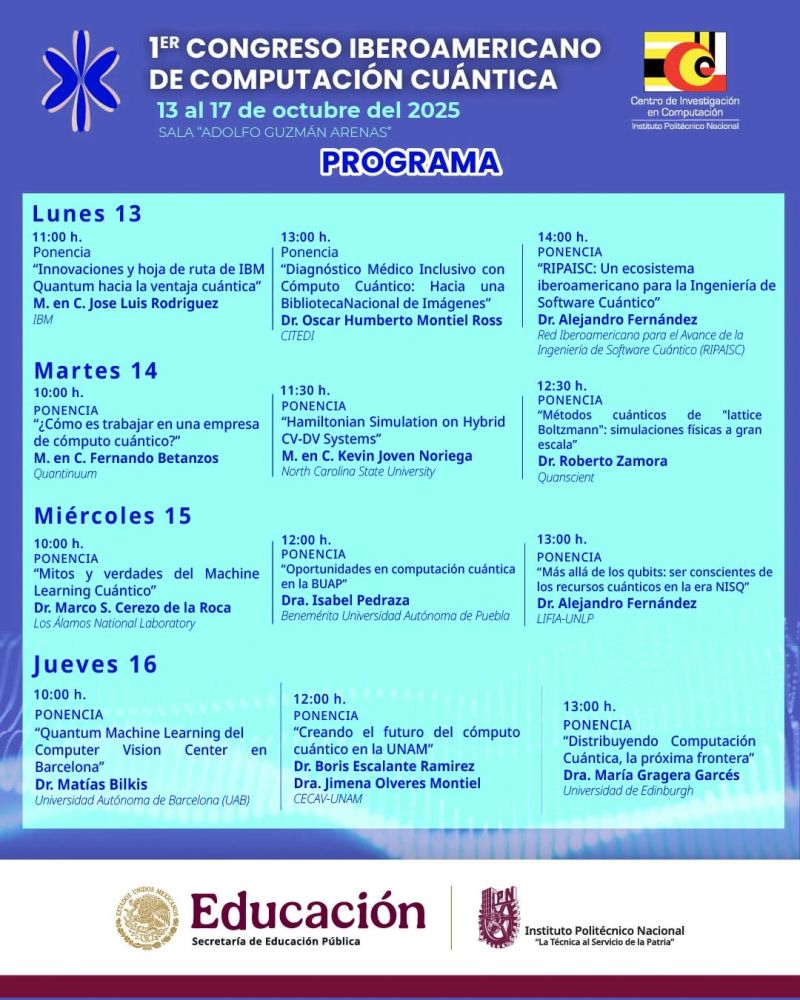 En el marco del 1er Congreso Iberoamericano de Computación Cuántica, celebrado en el Centro de Investigación en Computación (CIC) del Instituto Politécnico Nacional (IPN), que tuvo lugar del 13 al 17 de Octubre, el Dr. Alejandro Fernández, investigador del LIFIA (Facultad de Informática, Universidad Nacional de La Plata, Argentina), realizó una visita institucional que incluyó diversas actividades de colaboración académica y científica.