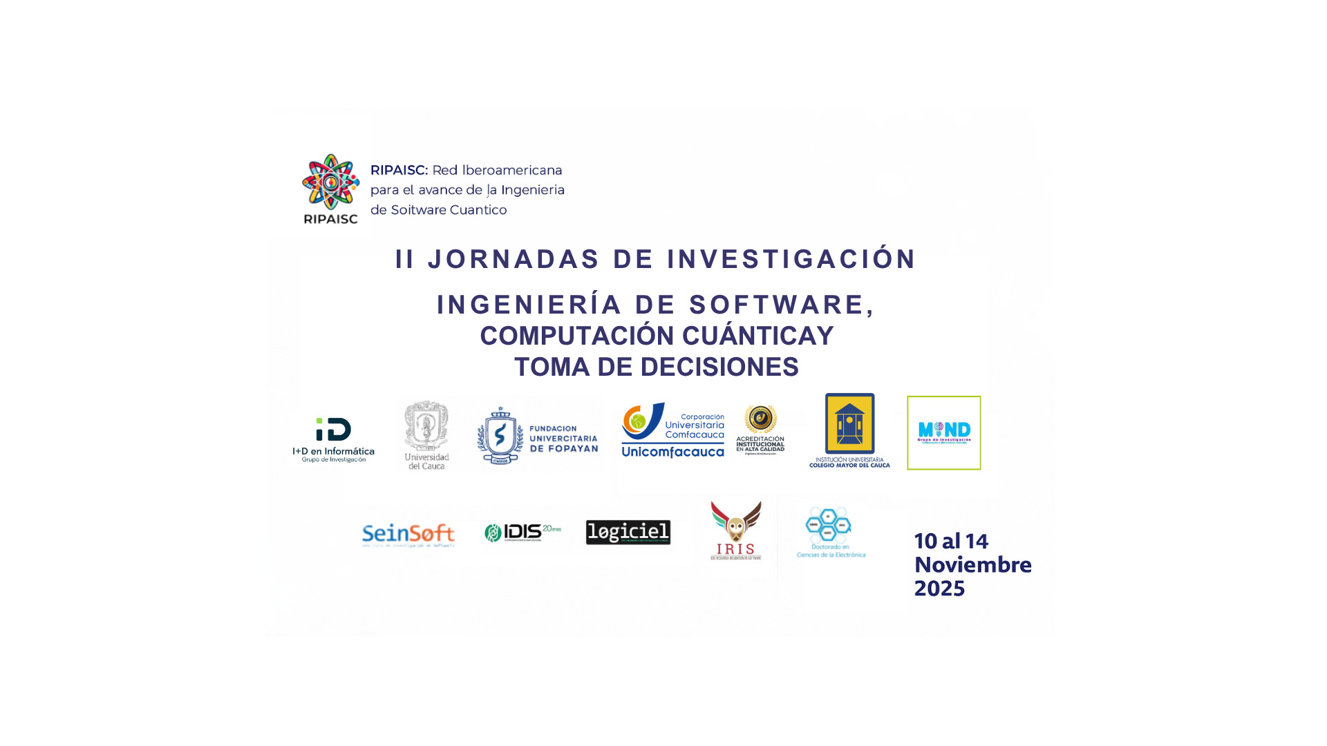 La ciudad de Popayán será sede, del 10 al 14 de noviembre de 2025, de las II Jornadas de investigación en ingeniería de software, computación cuántica y toma de decisiones, un evento académico y científico que reunirá a estudiantes, docentes, investigadores y profesionales de Iberoamérica.